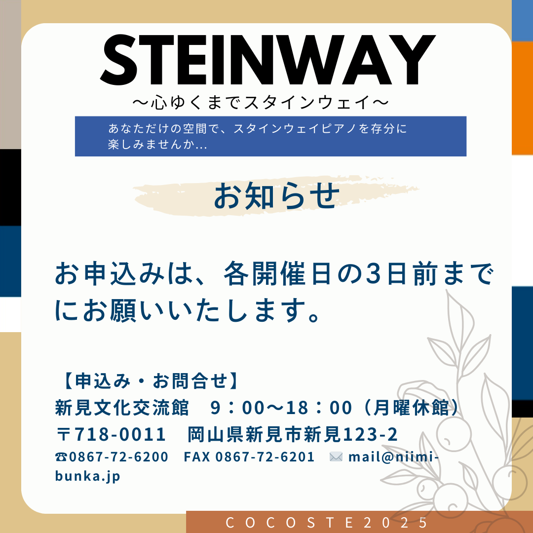お知らせ COCOSTE「ここスタ」心ゆくまでスタインウェイ